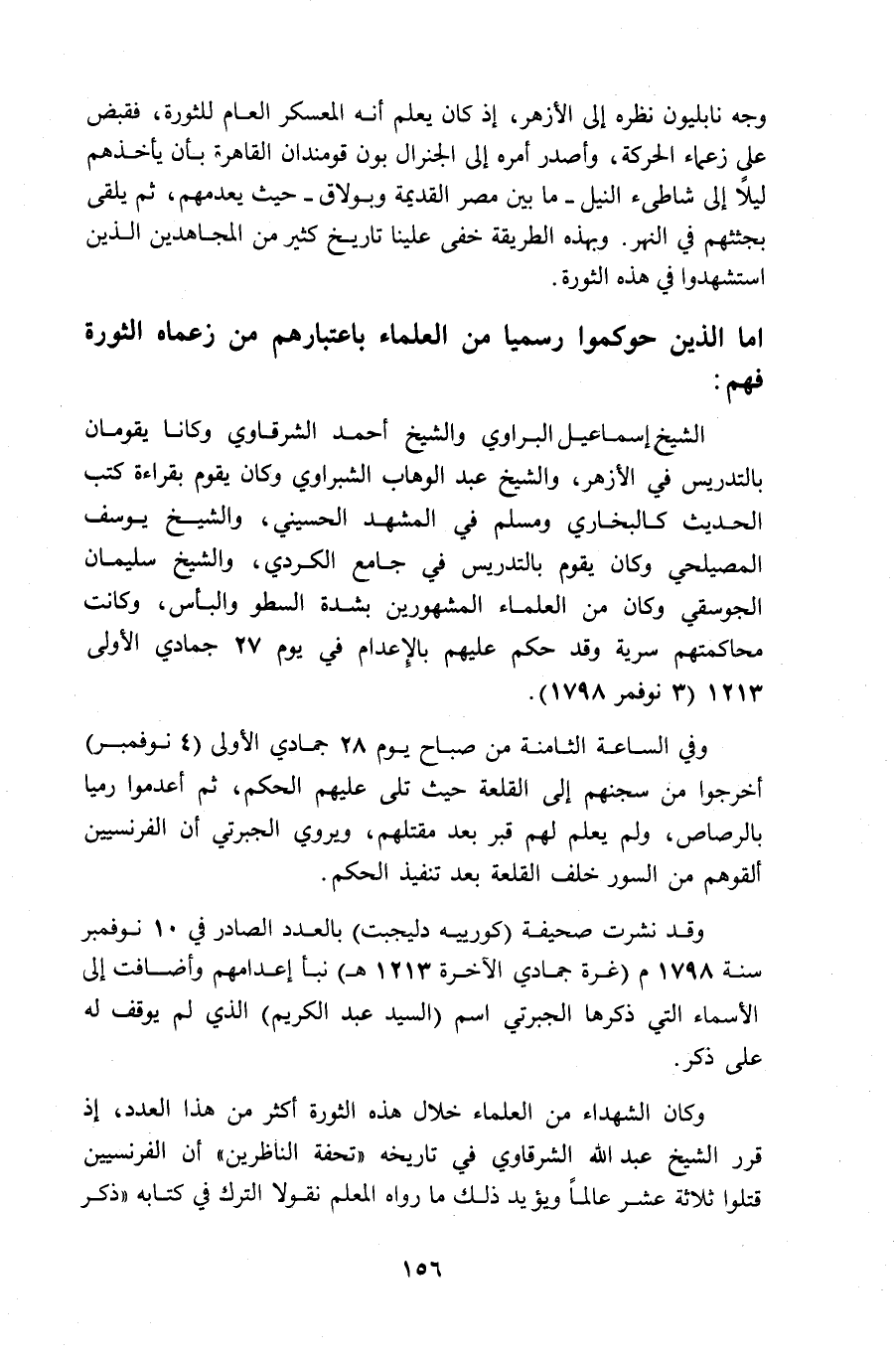 وكان الشهداء من العلماء خلال هذه الثورة أكثر من هذا العدد، إذ قرر الشيخ عبد اللّه الشرقاوي في تاريخه «تحفة الناظرين» أن الفرنسيين قتلوا ثلاثة عشر عالما ويؤيد ذلك ما رواه المعلم نقولا الترك في كتابه «ذكر