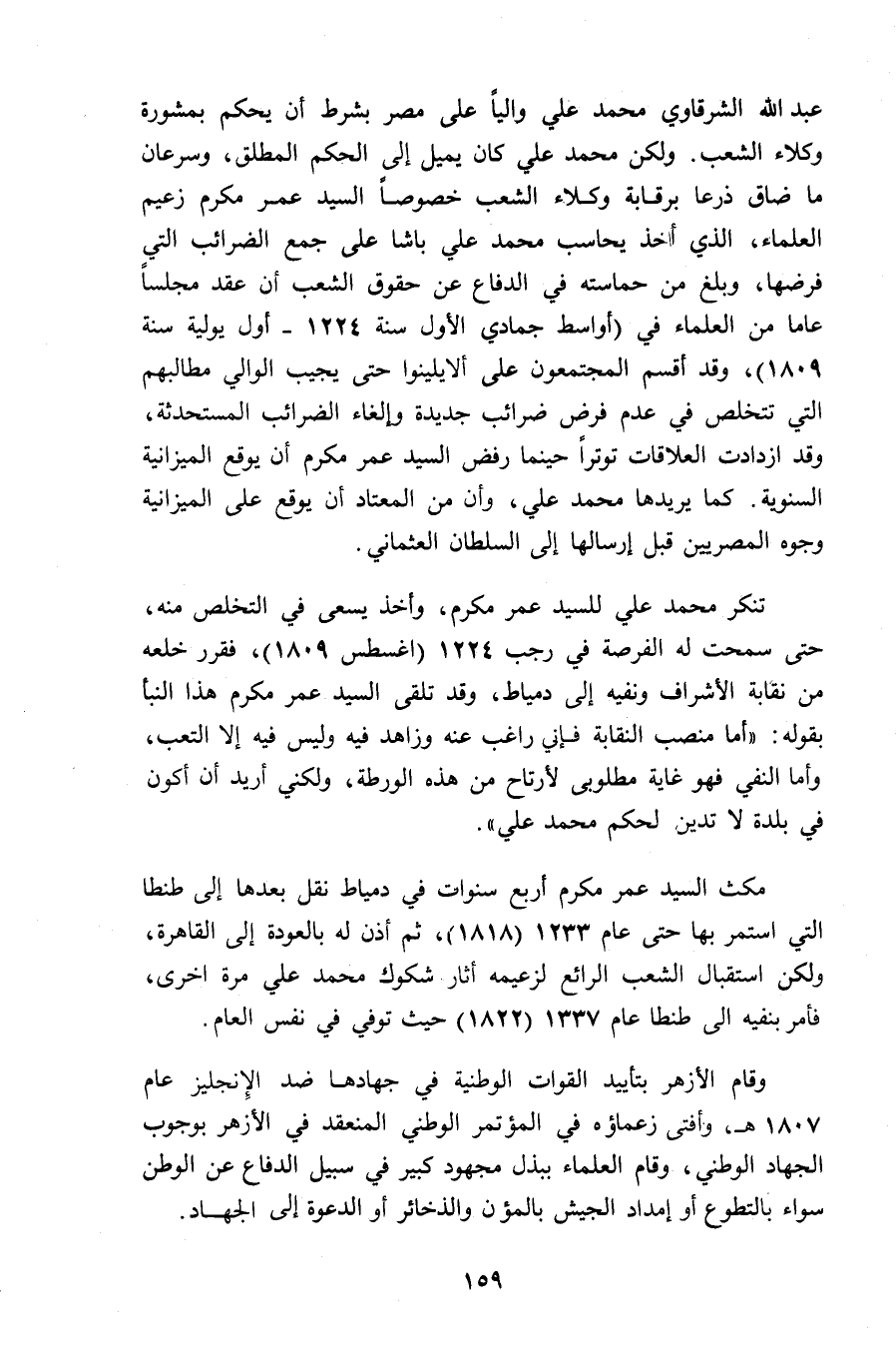 عبد اللّه الشرقاوي محمد علي واليا على مصر بشرط أن يحكم بمشورة وكلاء الشعب. ولكن محمد علي كان يميل إلى الحكم المطلق، وسرعان ما ضاق ذرعا برقابة وكلاء الشعب خصوصا السيد عمر مكرم زعيم العلماء، الذي أخذ يحاسب محمد علي باشا على جمع الضرائب التي فرضها، وبلغ من حماسته في الدفاع عن حقوق الشعب أن عقد مجلسا عاما من العلماء في (أواسط جمادي الأول سنة 1224 - أول يولية سنة 1809)، وقد أقسم المجتمعون على ألا يلينوا حتى يجيب الوالي مطالبهم التي تتخلص في عدم فرض ضرائب جديدة وإلغاء الضرائب المستحدثة، وقد ازدادت العلاقات توترا حينما رفض السيد عمر مكرم أن يوقع الميزانية السنوية. كما يريدها محمد علي، وأن من المعتاد أن يوقع على الميزانية وجوه المصريين قبل إرسالها إلى السلطان العثماني.