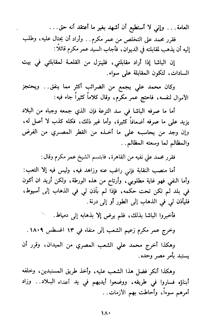 وكان محمد علي يجمع من الضرائب أكثر مما ينفق. . ويحتجز الأموال لنفسه، فاحتج عمر مكرم، وقال كلاما كثيرا جاء فيه: