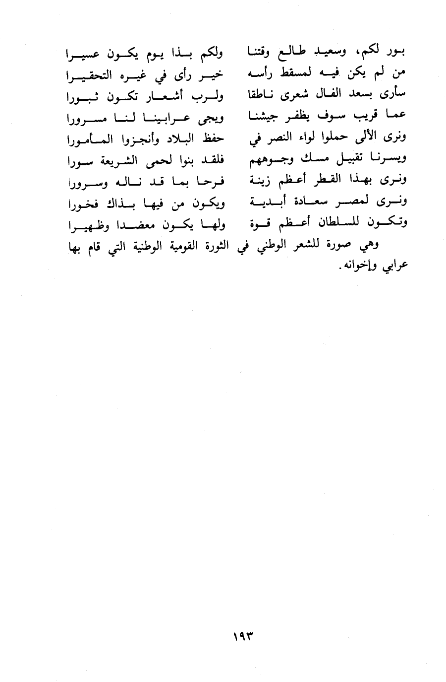 وهي صورة للشعر الوطني في الثورة القومية الوطنية التي قام بها عرابي وإخوانه.