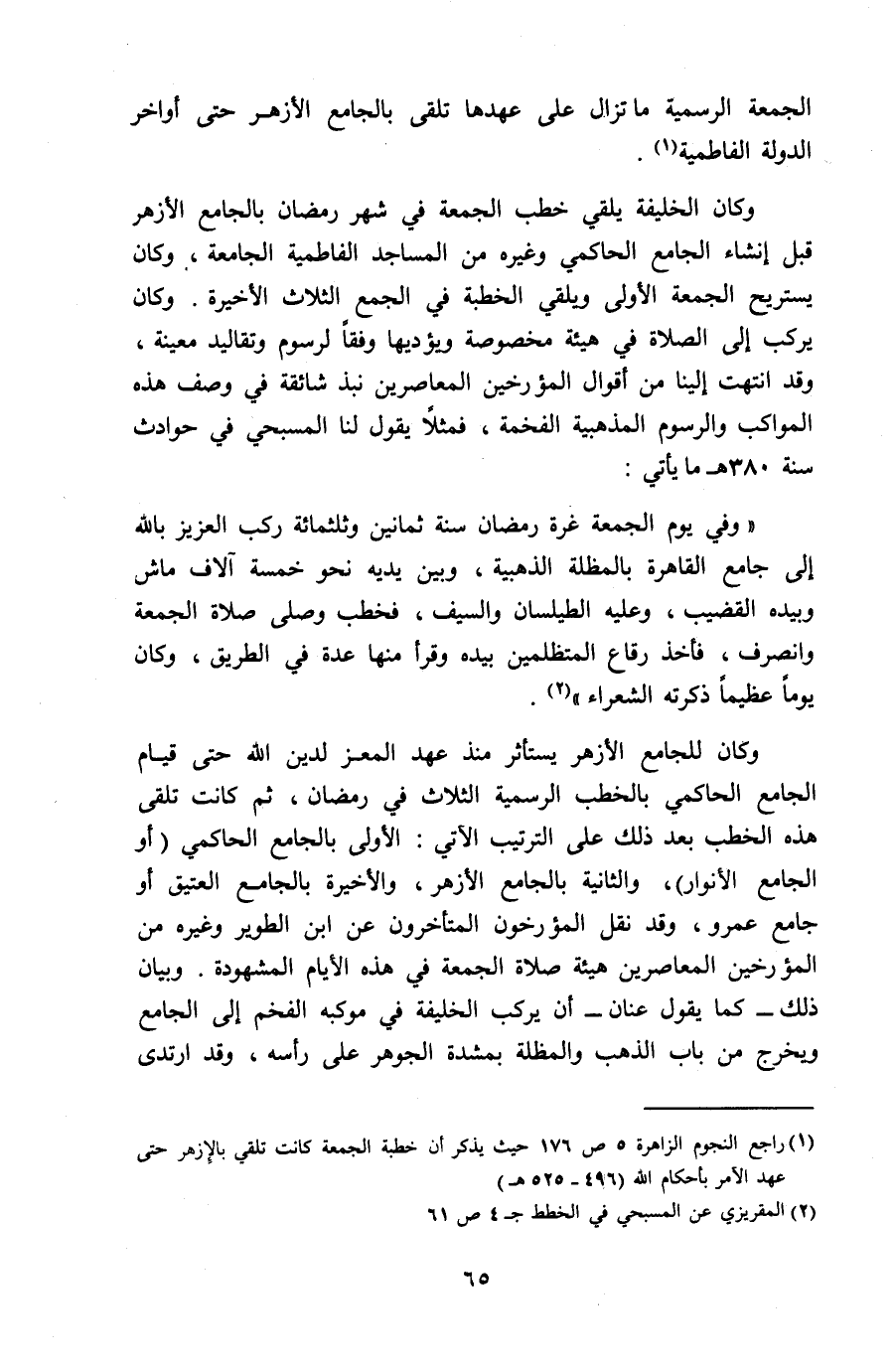 الجمعة الرسمية ما تزال على عهدها تلقى بالجامع الأزهر حتى أواخر الدولة الفاطمية 1.