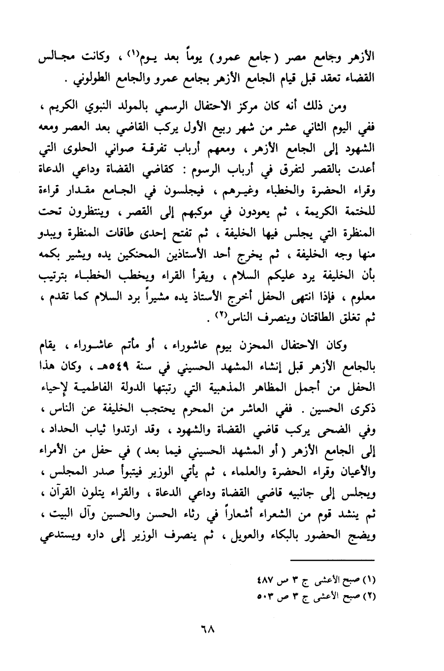 الأزهر وجامع مصر (جامع عمرو) يوما بعد يوم 1، وكانت مجالس القضاء تعقد قبل قيام الجامع الأزهر بجامع عمرو والجامع الطولوني.