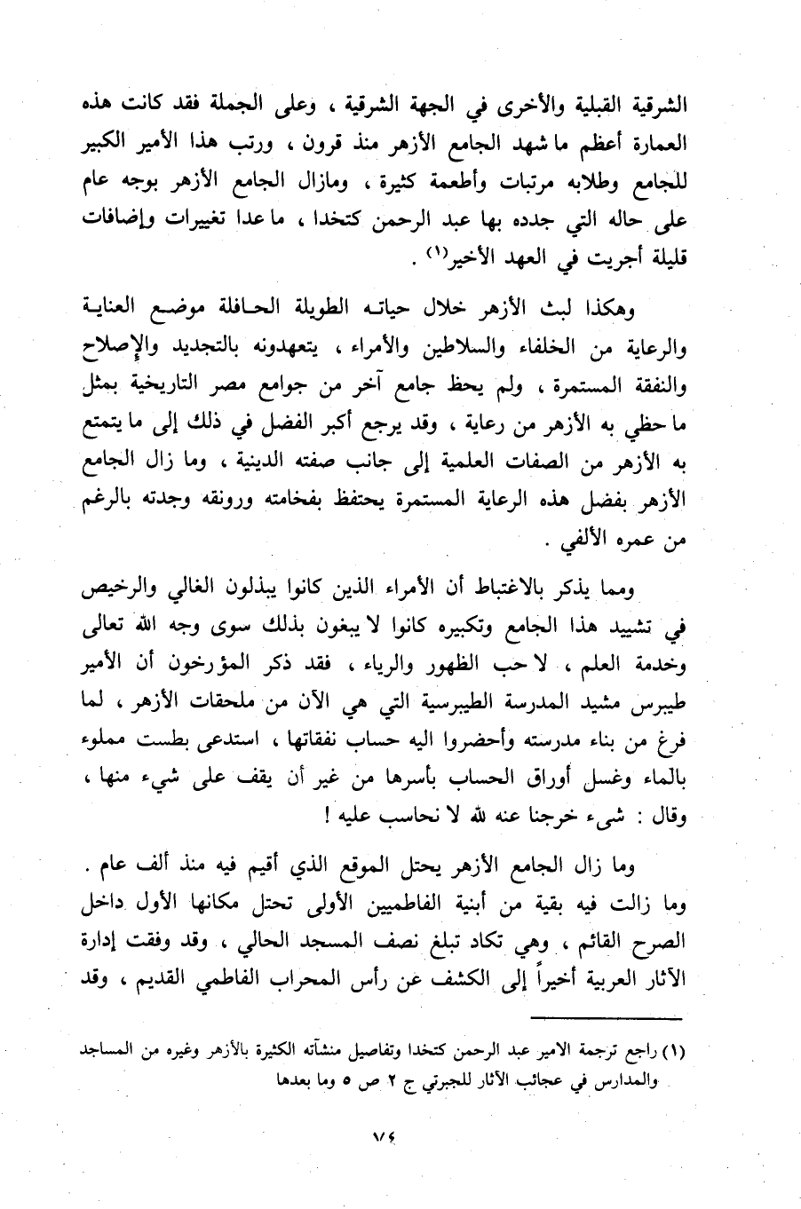1) راجع ترجمة الامير عبد الرحمن كتخدا وتفاصيل منشآته الكثيرة بالأزهر وغيره من المساجد والمدارس في عجائب الآثار للجبرتي ج 2 ص 5 وما بعدها