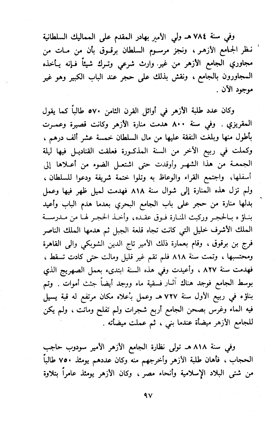 وفي سنة 784 ه ولي الأمير بهادر المقدم على المماليك السلطانية نظر الجامع الأزهر، ونجز مرسوم السلطان برقوق بأن من مات من مجاوري الجامع الأزهر من غير وارث شرعي وترك شيئا فإنه يأخذه المجاورون بالجامع، ونقش بذلك على حجر عند الباب الكبير وهو غير موجود الآن.