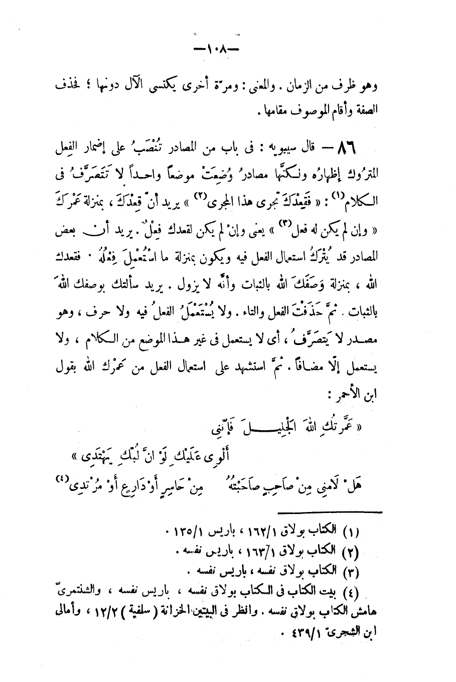 ثم استشهد على استعمال الفعل من (عمرك الله) بقول ابن أحمر: