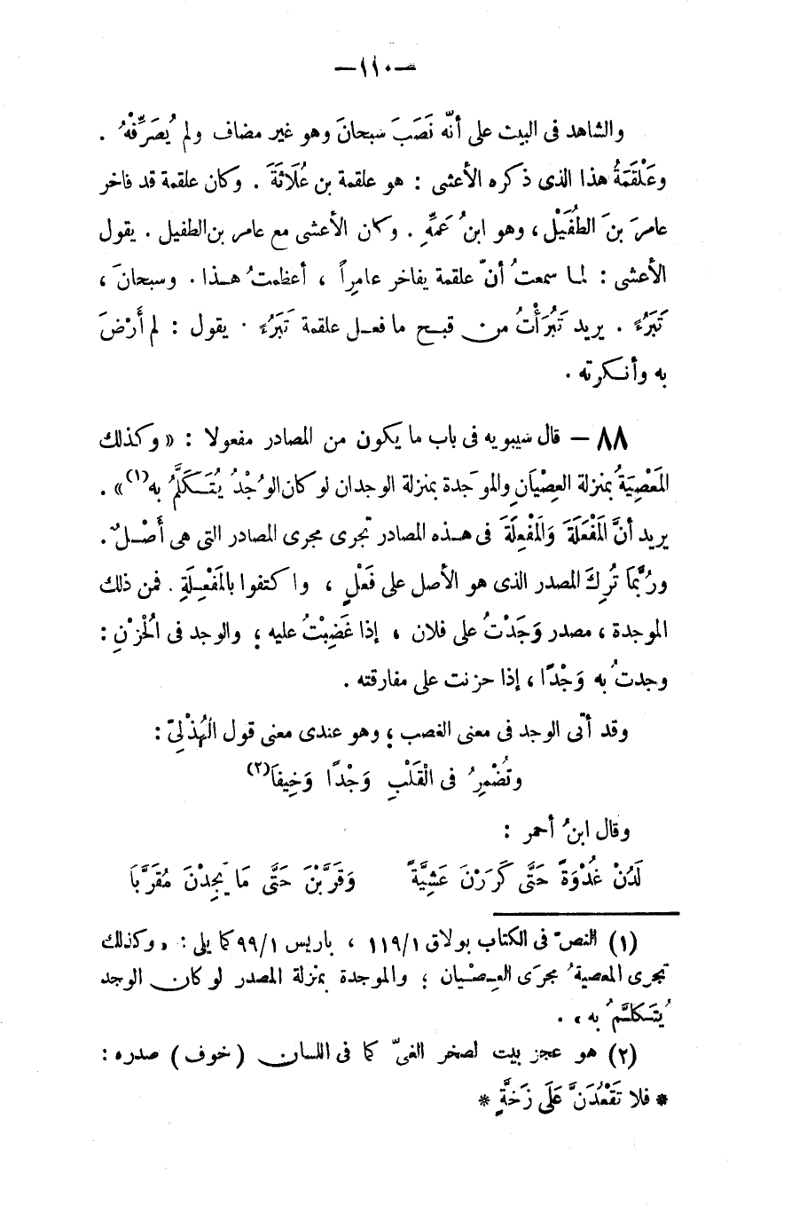 قال سيبويه في باب ما يكون من المصادر مفعولا: وكذلك المعصية بمنزلة العصيان والموجدة بمنزلة الوجدان، لو كان الوجد يتكلم به.