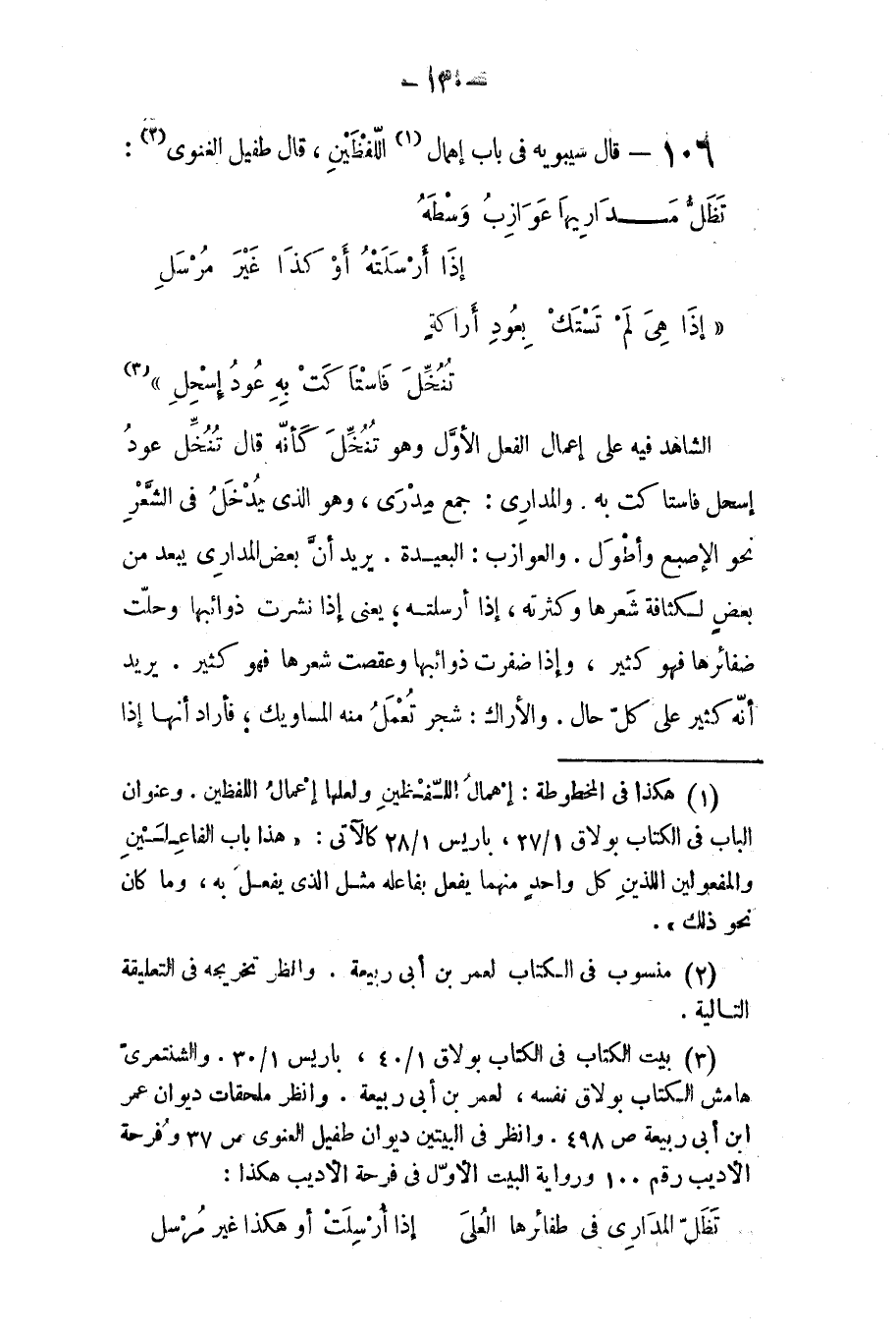 قال سيبويه في: باب إهمال أحد اللفظين. قال طفيل الغنوي: