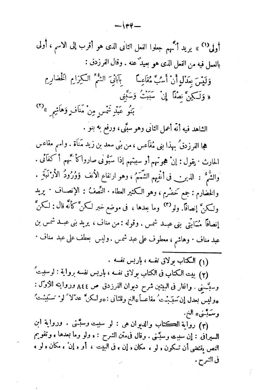 (ولكنَّ نِصْفاً أن سَسَبْتُ وسَّبني ... بنو عبد شمسٍ من مَنافٍ وهاشِمِ)
