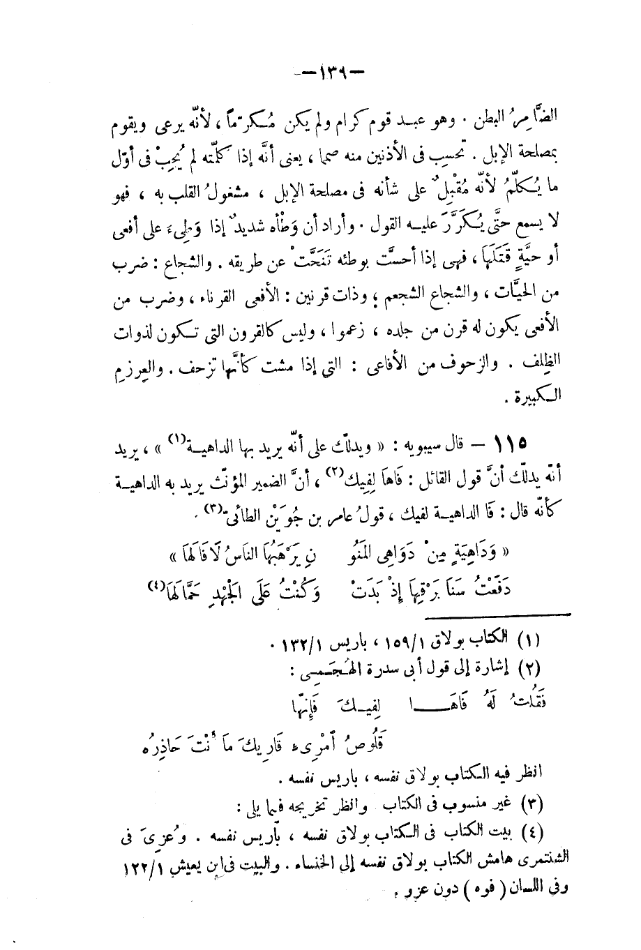 قال سيبويه: ويدلك على إنه يريد بها الداهية - يريد إنه يدلك أن قول القائل (فاهالفيك) أن الضمير المؤنث يريد به الداهية، كأنه قال فالداهية لفيك - قول عامر بن جوين الطائي: