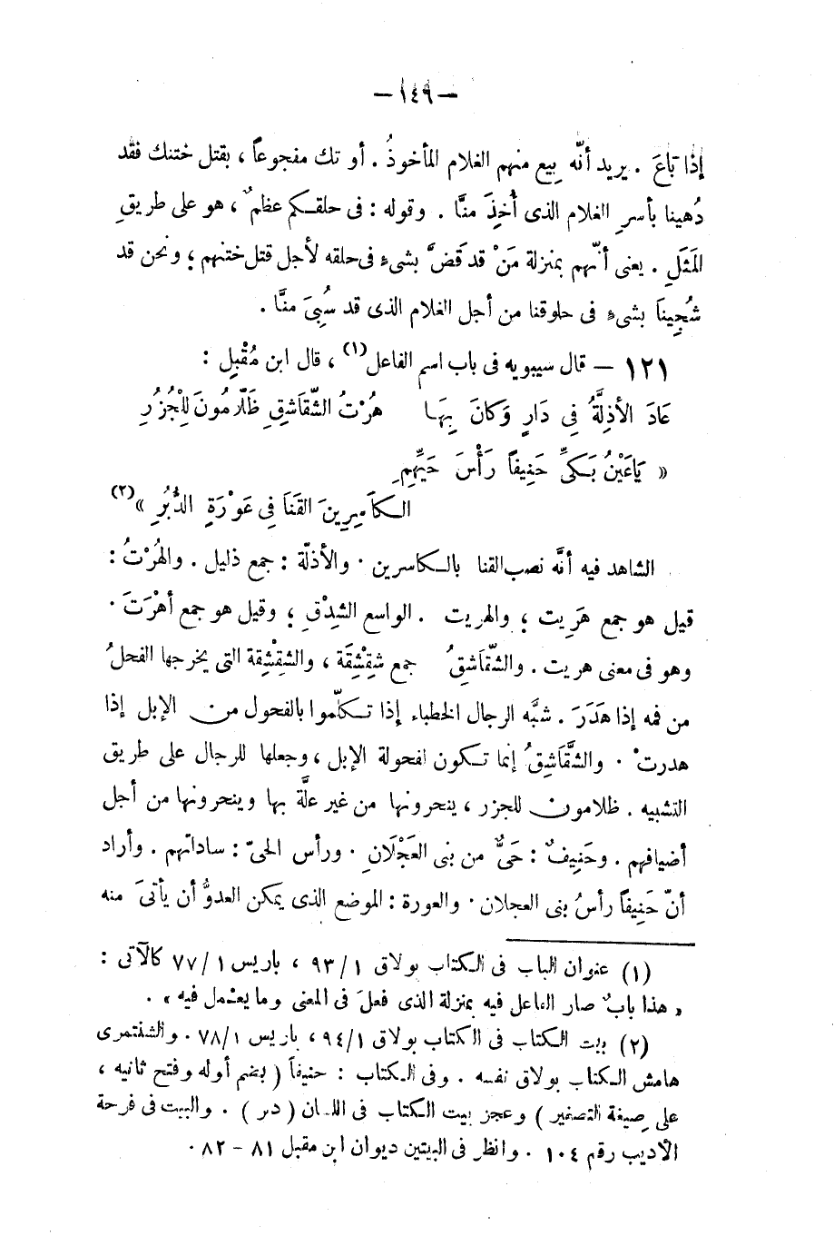 قال سيبويه في باب اسم الفاعل قال ابن مقبل: