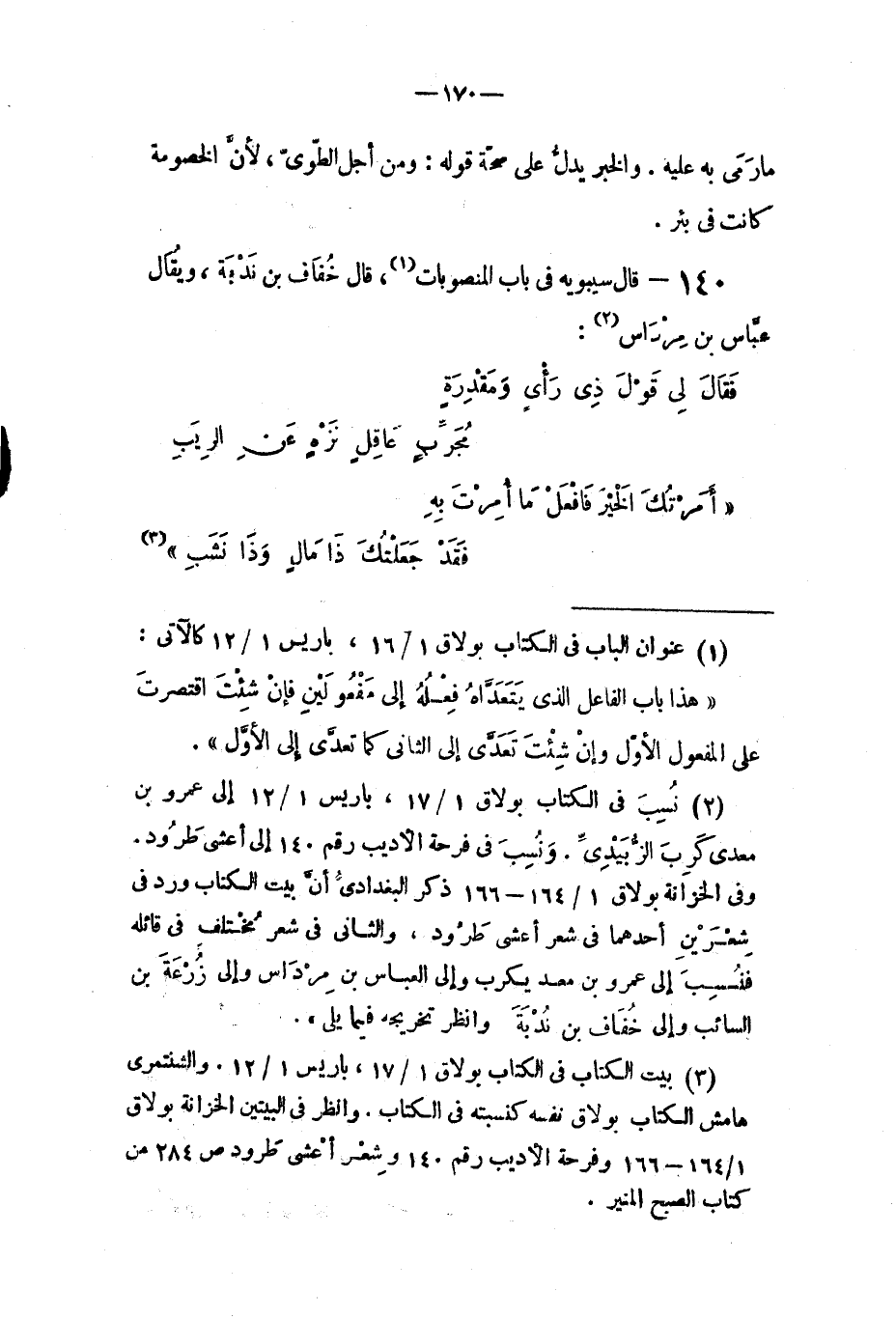 قال سيبويه في باب المنصوبات، قال خفاف بن ندية، ويقال: عباس بن مرداس: