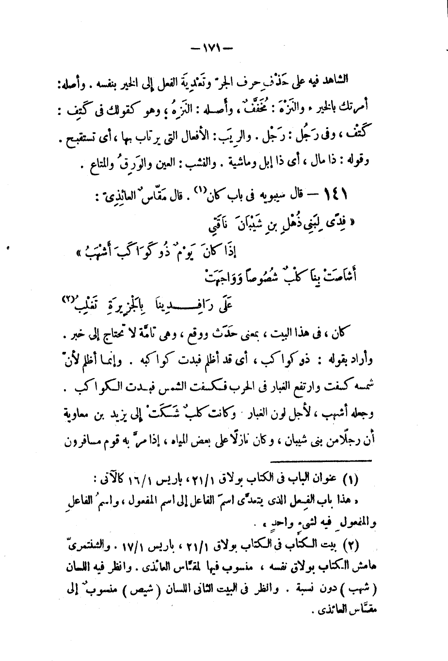 قال سيبويه في باب كان. قال مقاس العائذي: