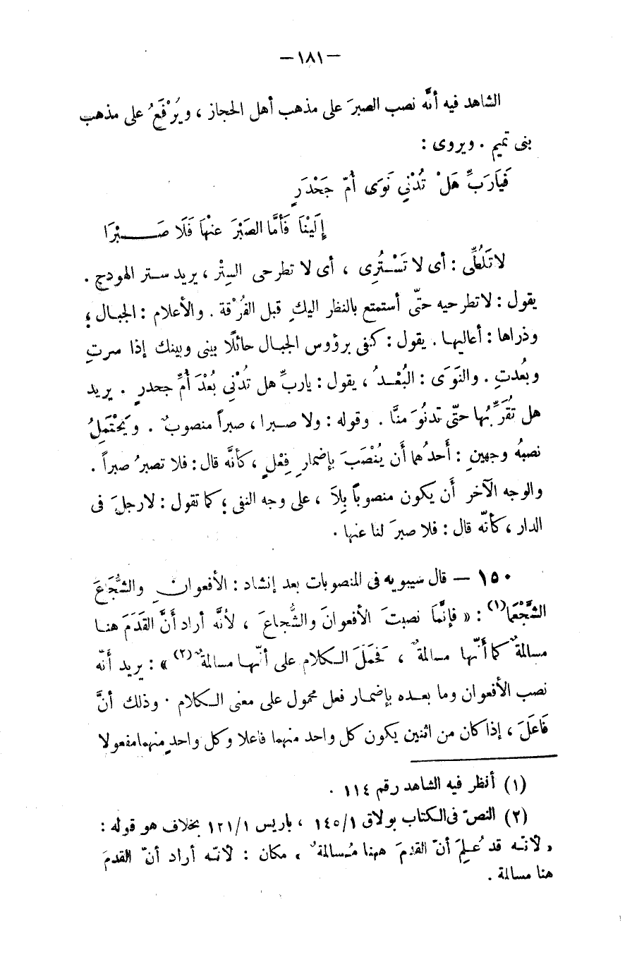 الشاهد فيه إنه نصب (الصبر) على مذهب أهل الحجاز، ويرفع على مذهب بني تميم.
