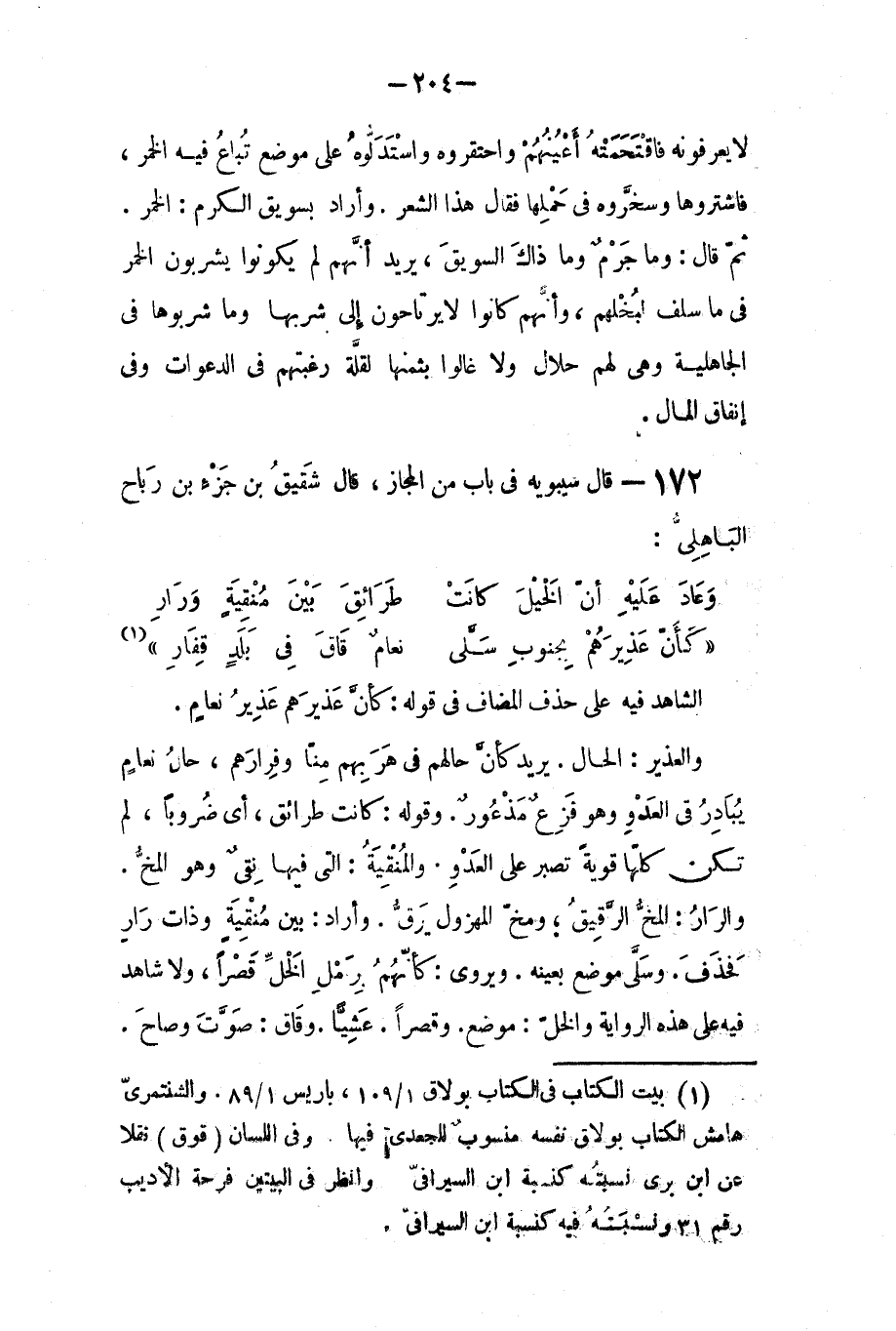 قال سيبويه في باب من المجاز: قال شقيق بن جزء بن رباح الباهلي: