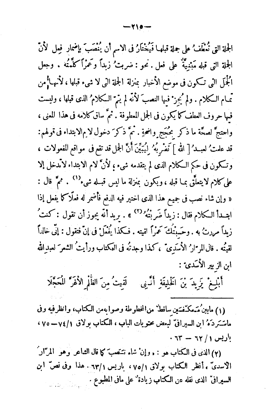 ثم قال: (وإن شاء نصب ويريد) وإن شاء نصب في جميع هذا الذي اختير فيه الرفع، فأضمر له فعلا، كما يفعل إذا ابتدأ الكلام فقال: زيدا ضربته. يريد إنه يجوز أن تقول: كنت زيدا مررت به، وحسبتك عمرا لقيته. فكذا يفعل في (أن) فتقول: أني خالدا لقيته.