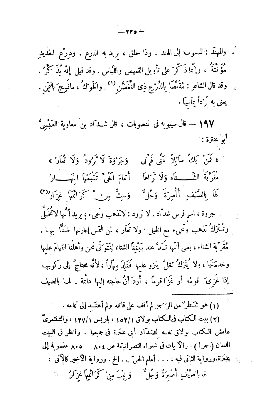 قال سيبويه في المنصوبات: قال شداد بن معاوية العبسي أبو عنترة: