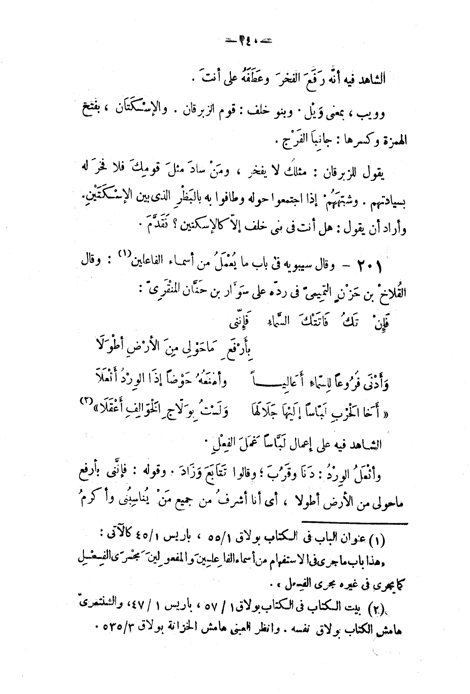 قال سيبويه في باب ما يعمل من أسماء الفاعلين: وقال الفلاخ بن حزن التميمي في رده على سوار بن حنان المنقري: