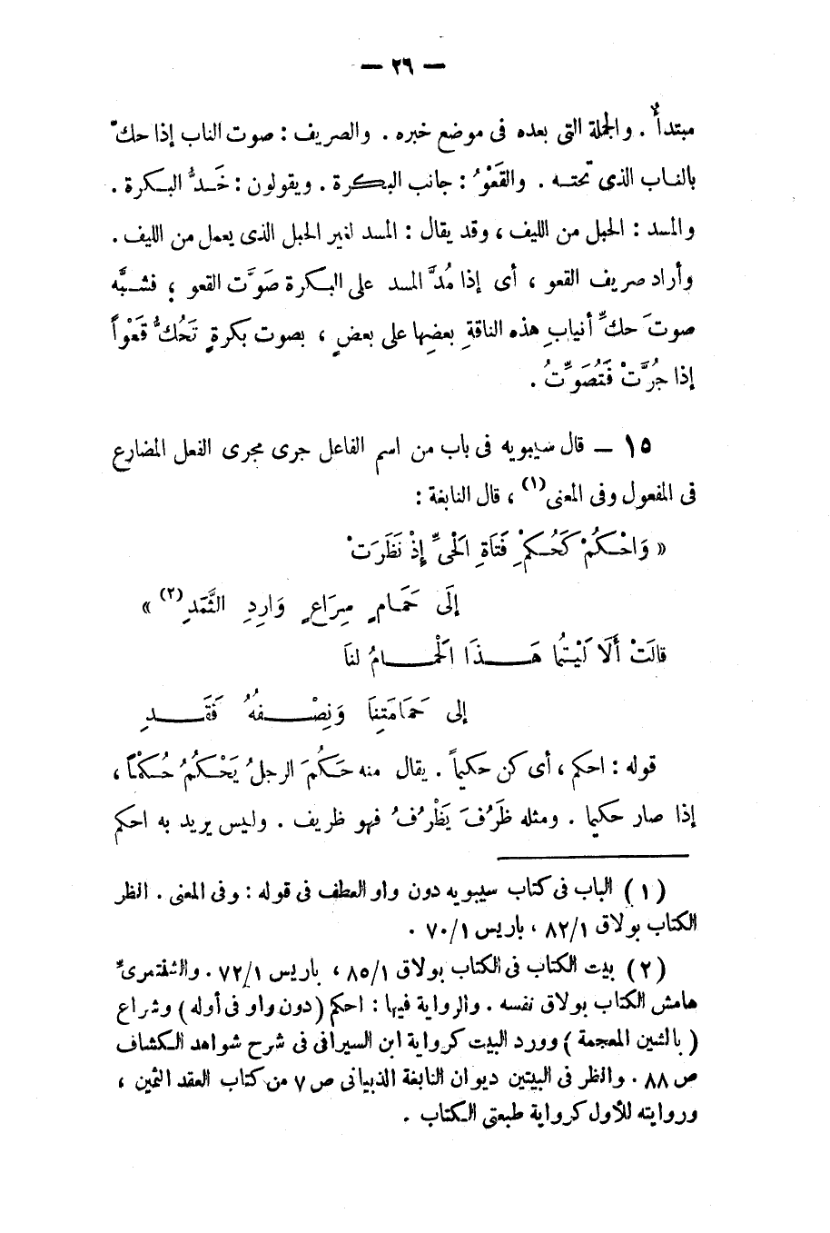 قال سيبويه في: باب من اسم الفاعل جرى مجرى الفعل المضارع في المفعول وفي المعنى. قال النابغة:
