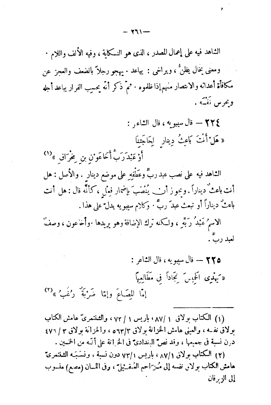 الشاهد فيه على نصب (عبد رب) وعطفه على موضع (دينار). والأصل: هل أنت باعث دينارا. ويجوز أن تنصب بإضمار فعل، كأنه قال: هل ا، ت باعث دينارا أو تبعث عبد رب. وكلام سيبويه يدل على هذا.