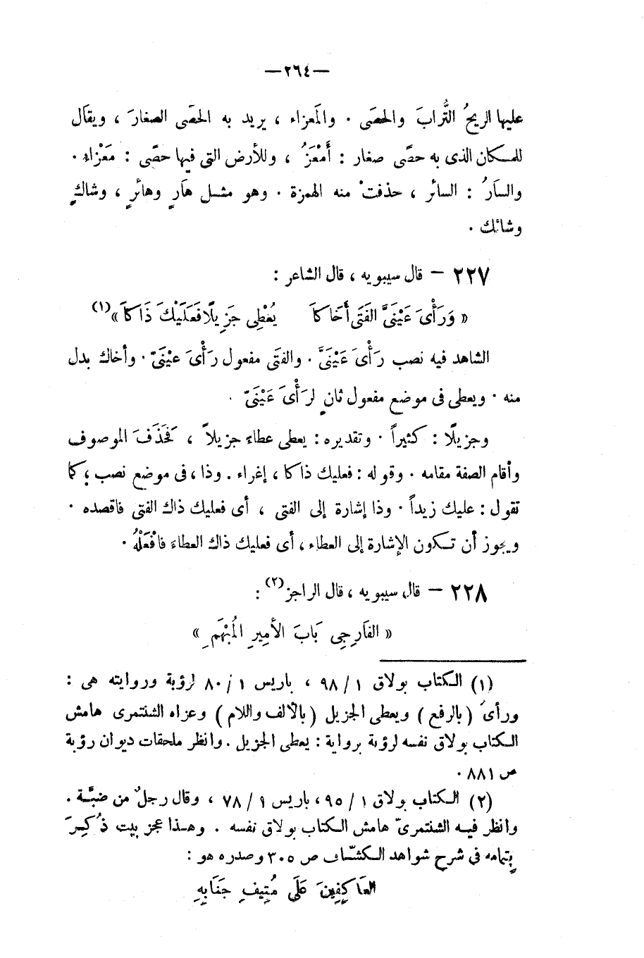 الشاهد فيه نصب (رأي عيني). و (الفتى) مفعول (رأي عيني) و (أخاكا) بدل منه، و (يعطي) في موضع مفعول ثان لـ (رأي عيني) وجزيلا: كثيرا، وتقديره يعطي عطاء جزيلا، فحذف الموصوف وأقام الصفة مقامه. وقوله: فعليك ذاكا إغراء و (ذا) في موضع نصب، كما تقول: عليك زيدا و (ذا) إشارة إلى الفتى. أي فعليك ذاك الفتى فاقصده، ويجوز أن تكون الإشارة إلى العطاء، أي فعليك ذاك العطاء فافعله.