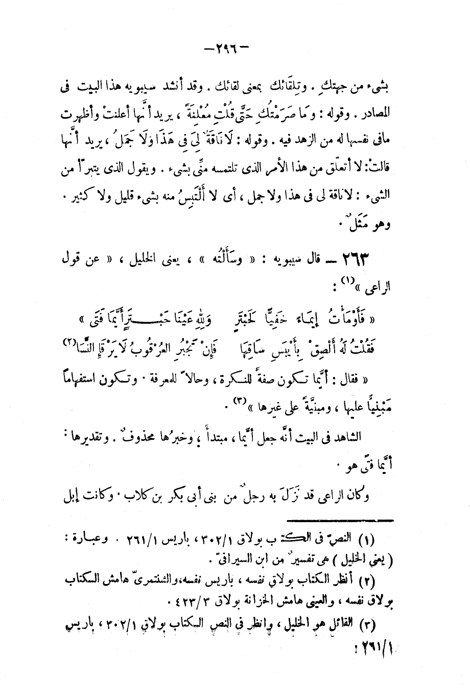 قال سيبويه: وسألته - يعني الخليل - عن قول الراعي: