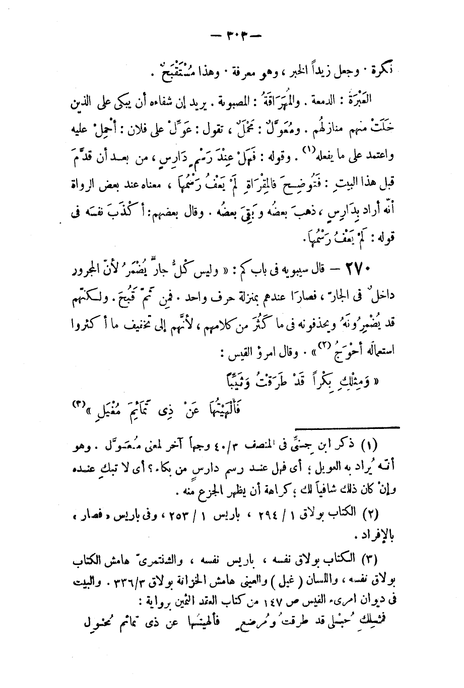 منهم منازلهم، ومعول: محمل. تقول: عول على فلان، احمل عليه واعتمد على ما يفعله. وقوله: فهل عند رسم دارس، من بعد أن قدم قبل هذا البيت: (فتوضح فالمقراة لم يعف رسمها) معناه عند بعض الرواة، أنه أراد بدارس: ذهب بعضه وبقي بعضه. وقال بعضهم: أكذب نفسه في قوله: لم يعف رسمها.