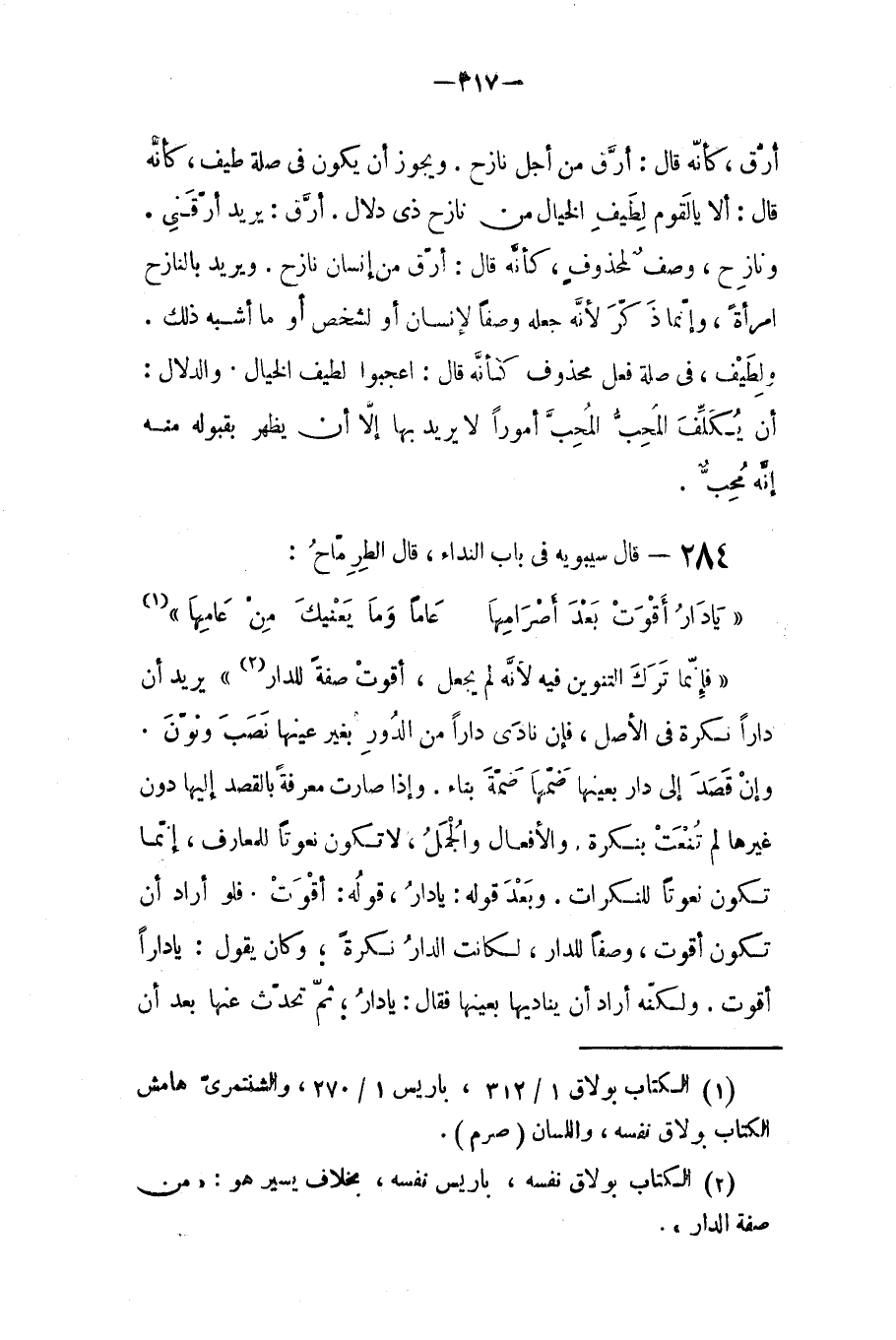 قال سيبويه في باب النداء: قال الطرماح: