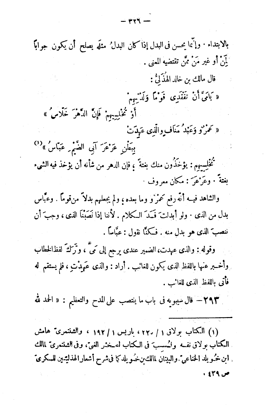 والشاهد فيه رفع (عمرو) وما بعده، ولم يجعلهم بدلا من (قوما) و (عباس) بدل من (الذي). ولو أبدلت فسد الكلام، لأننا إذا نصبنا (الذي) وجب أن ننصب الذي هو بدل منه، فكنا نقول: عباسا: