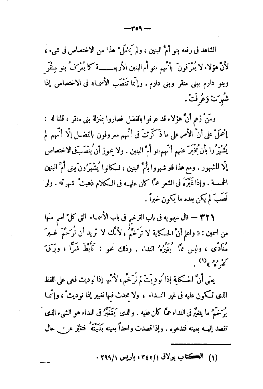 الشاهد في رفعه (بنو أم البنين) ولم يجعل هذا من الاختصاص في شيء، لأن هؤلاء لا يعرفون بأنهم بنو أم البنين الأربعة، كما يعرف بنو منقر وبنو دارم ببني منقر وبني دارم. وإنما تنصب الأسماء في الاختصاص إذا شهرت وعرفت.