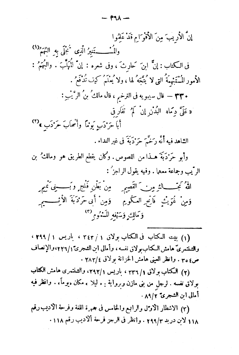 الشاهد فيه إنه رخم (حردبة) في غير النداء، وأبو حردبة هذا من اللصوص، وكان يقطع الطريق هو ومالك بن الريب وجماعة معها. وفيه يقول الراجز: