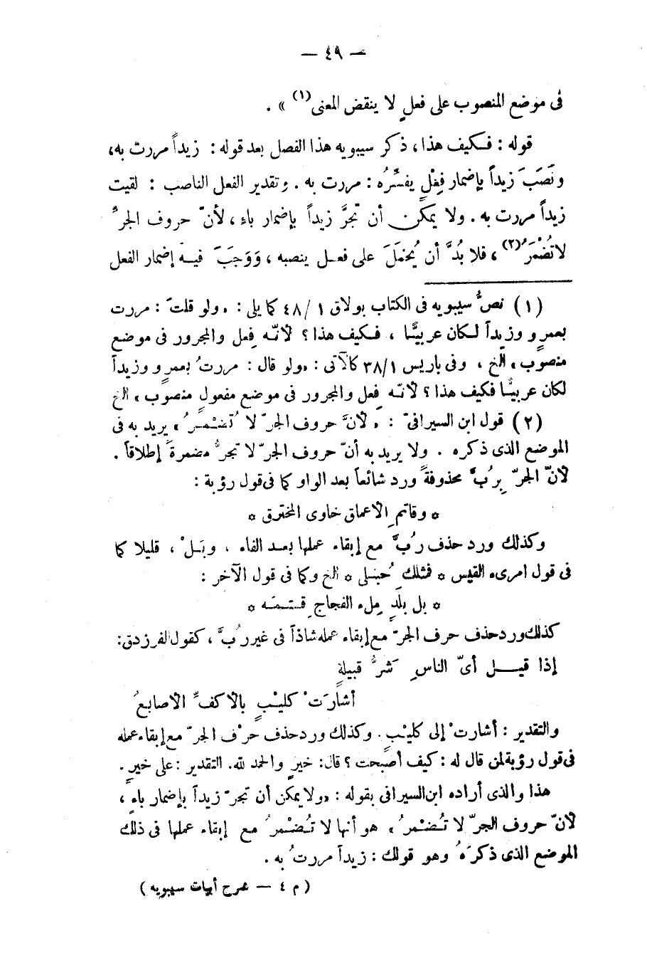 قوله: فكيف هذا: ذكر سيبويه عذا الفصل بعد قوله: زيدا مررت به، فنصب زيدا بإضمار فعل؛ يفسره: (مررت به) وتقدير الفعل الناصب: لقيت زيدا مررت به، ولا يمكن أن تجر زيدا بإضمار باء، لأن حروف الجر لا تضمر، فلا بد أن يحمل على فعل ينصبه، ووجب فيه إضمار الفعل