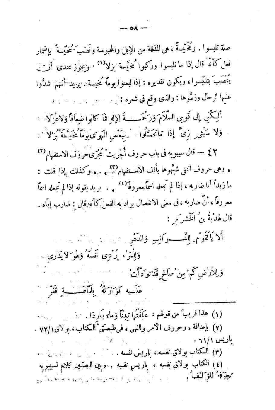 قال سيبويه في: باب حروف أجريت مجرى حروف الاستفهام، وهي حروف النفي شبهوها بألف الاستفهام. . . وكذلك إذا قلت: ما زيدا أنا ضاربه، إذا لم تجعله اسما معروفا.