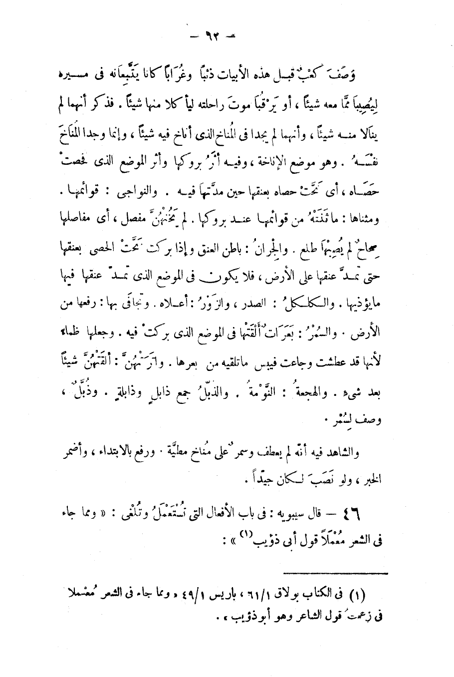 قال سيبويه في باب الأفعال التي تستعمل وتغلى: ومما جاء في الشعر معملا قول أبي ذؤيب: