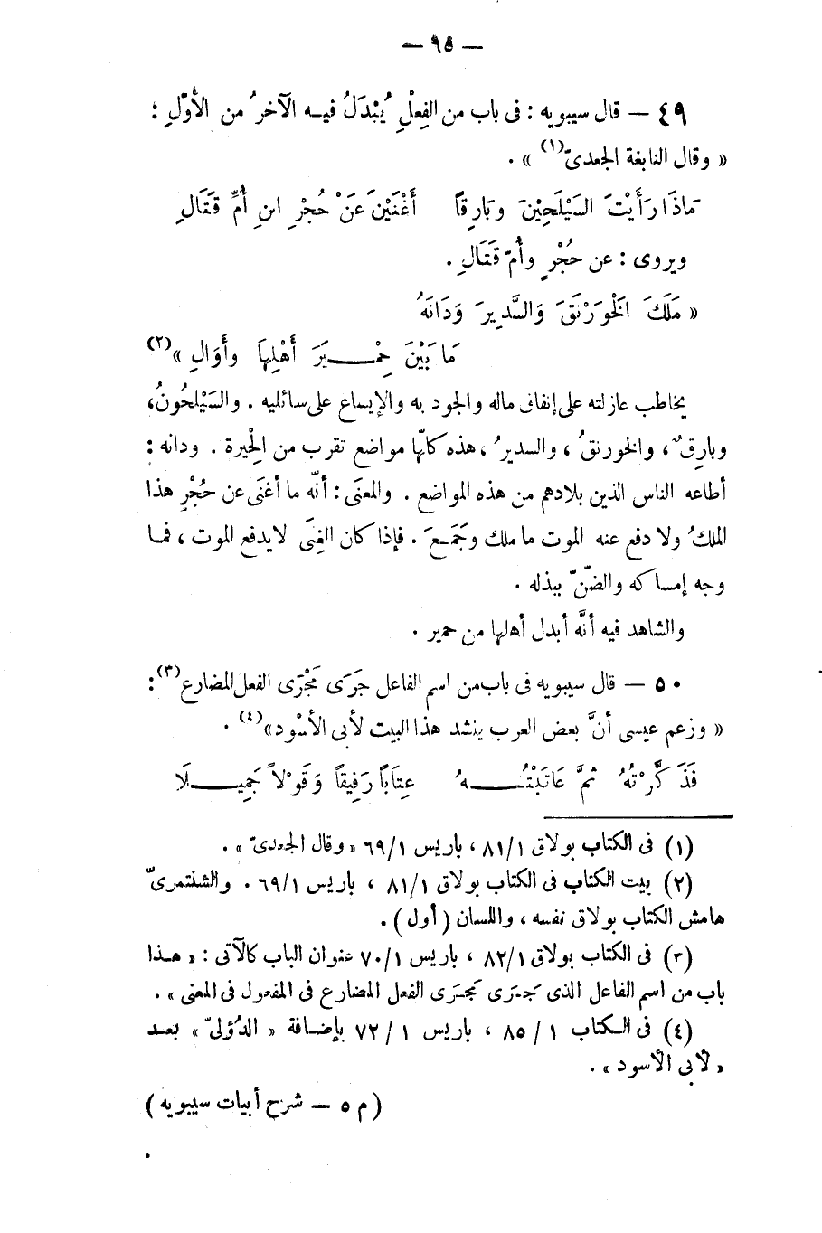 قال سيبويه في: باب من اسم الفاعل جرى مجرى الفعل المضارع وزعم عيسى أن بعض العرب ينشد هذا البيت لأبي الأسود: