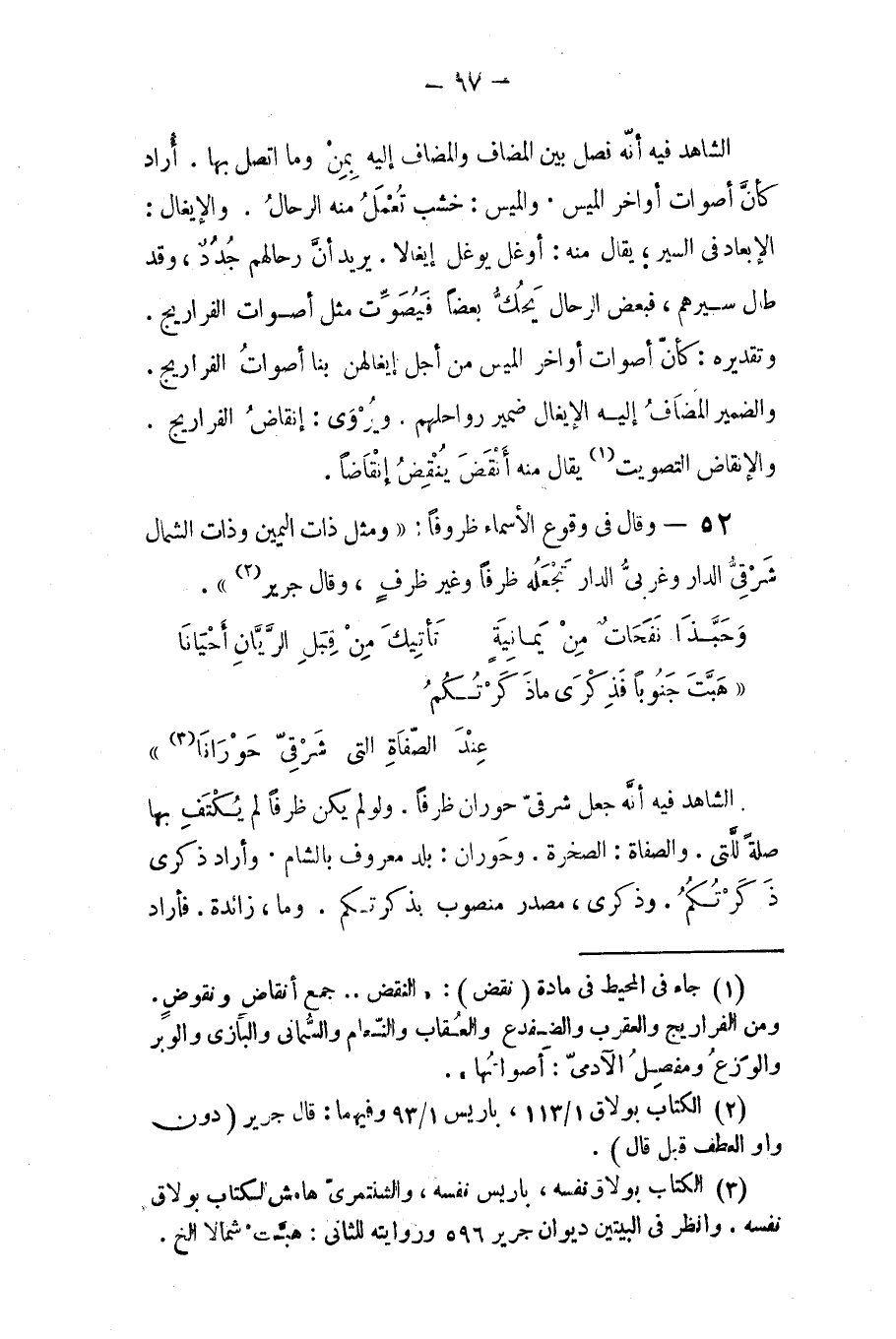 الشاهد فيه إنه جعل (شرقي حورانا) ظرفا، ولو لم يكن ظرفا لم يكتف بها صلة لـ (التي). والصفاة: الصخرة، وحوران: بلد معروف بالشام. وأراد: ذكرى