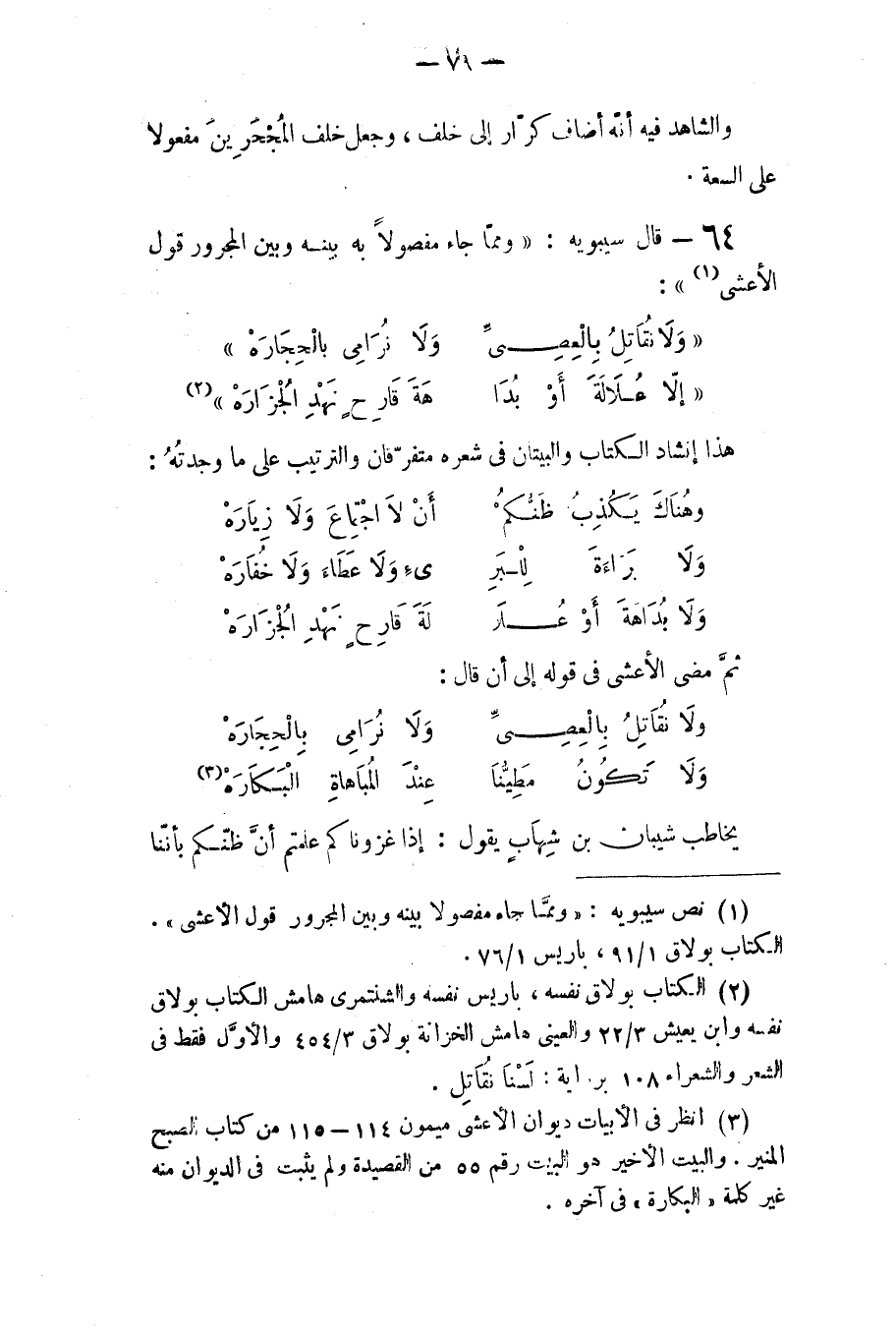 قال سيبويه: ومما جاء مفصولا به بينه وبين المجرور قول الأعشى: