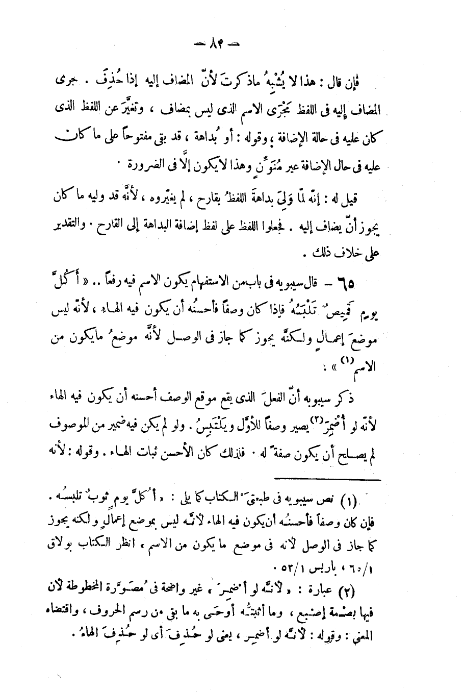 قيل له: إنه ولي (بداهة) اللفظ بـ (قارح) لم يغيروه، لأنه قد وليه ما كان يجوز أن يضاف اليه، فجعلوا اللفظ على لفظ إضافة البداهة إلى القارح. والتقدير على خلاف ذلك.