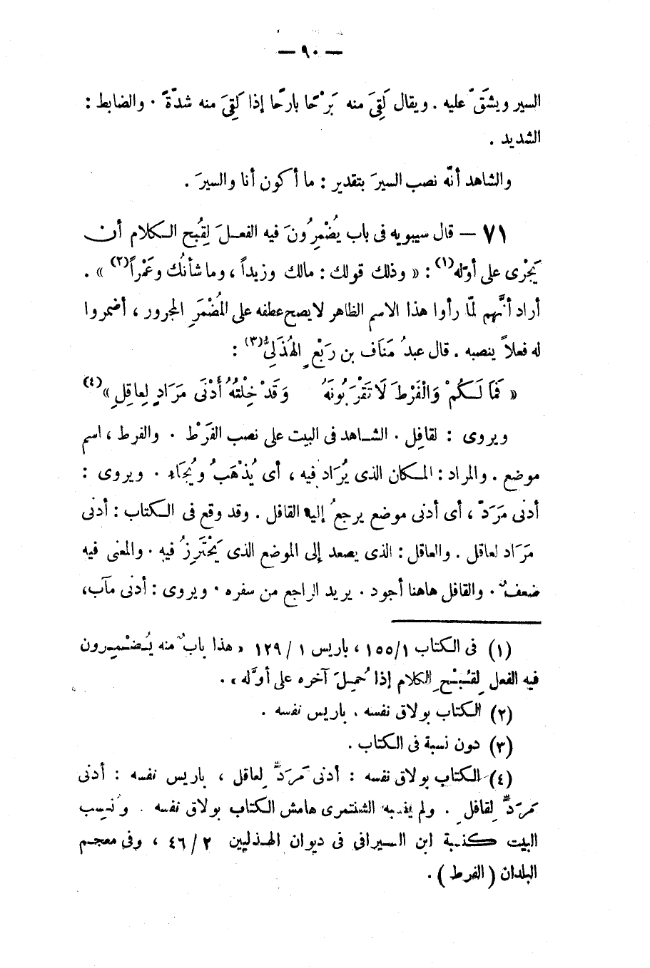 والشاهد إنه نصب (السير) بتقدير: ما أكون أنا والسير.