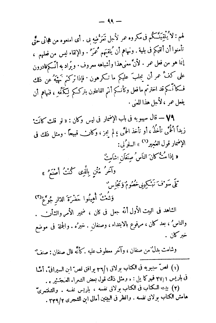 الشاهد في البيت الأول، إنه جعل في (كان) ضمير الأمر والشأن و (الناس) بعد (كان) مرفوع بالابتداء، و (صنفان) خبره، والجملة في موضع خبر كان، و (شامت) بدل من (صنفان) و (آخر) معطوف عليه. كأنه قال: صنفان: صنف