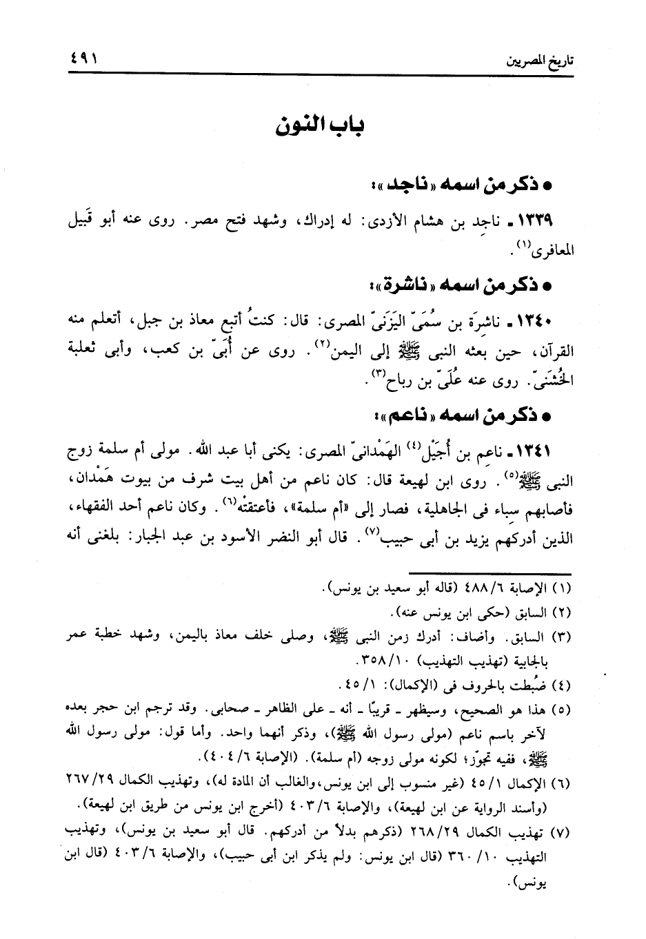 1339- ناجد بن هشام الأزدى: له إدراك، وشهد فتح مصر. روى عنه أبو قبيل المعافرى «1» .