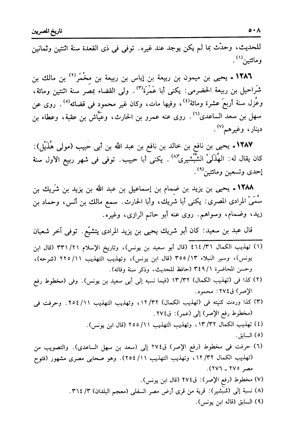 1387- يحيى بن نافع بن خالد بن نافع بن عبد الله بن أبى حبيب (مولى هذيل) :