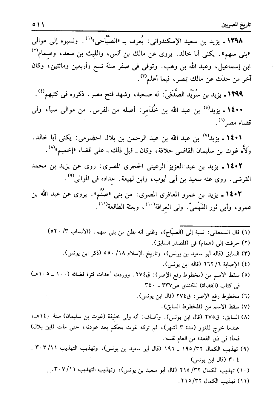 1400- يزيد «5» بن عبد الله بن خذامر: أصله من الفرس. من موالى سبأ، ولى قضاء مصر «6» .