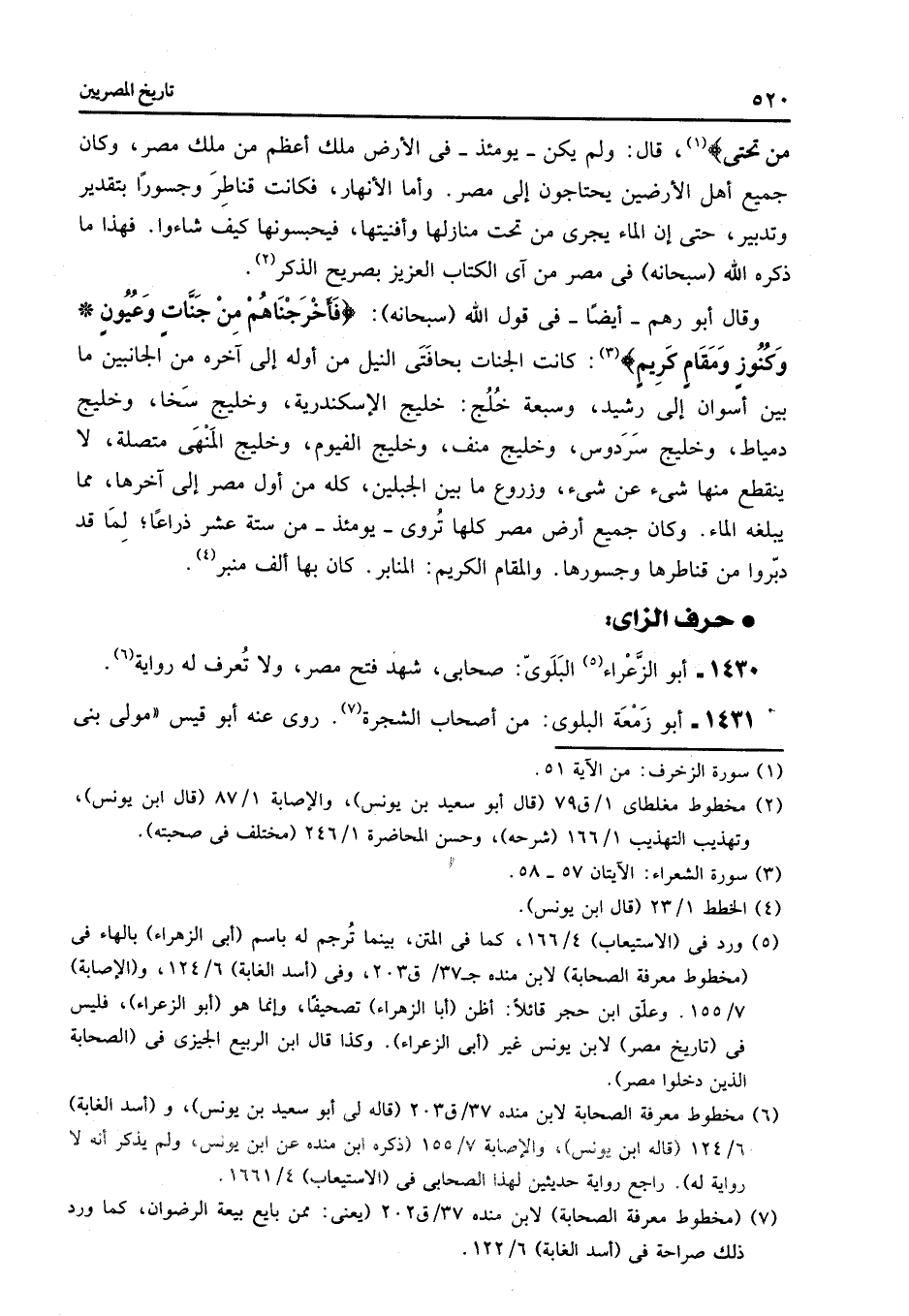 1430- أبو الزّعراء «5» البلوىّ: صحابى، شهد فتح مصر، ولا تعرف له رواية «6» .