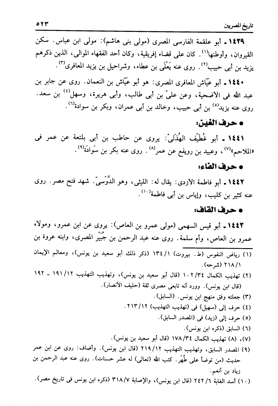 1440- أبو عيّاش المعافرى المصرى: هو أبو عيّاش بن النعمان. روى عن جابر بن عبد الله فى الأضحية، وعن علىّ بن أبى طالب، وأبى هريرة، وسهل «4» بن سعد.