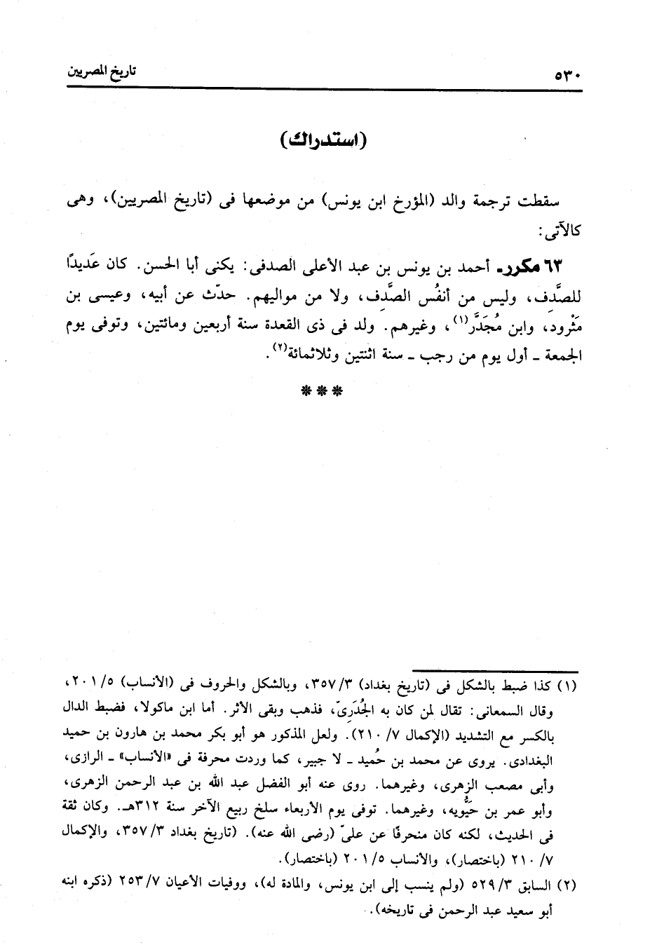 سقطت ترجمة والد (المؤرخ ابن يونس) من موضعها فى (تاريخ المصريين) ، وهى كالآتى: