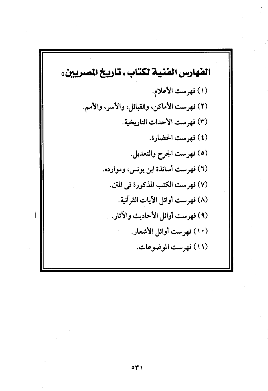 (11) فهرست الموضوعات.