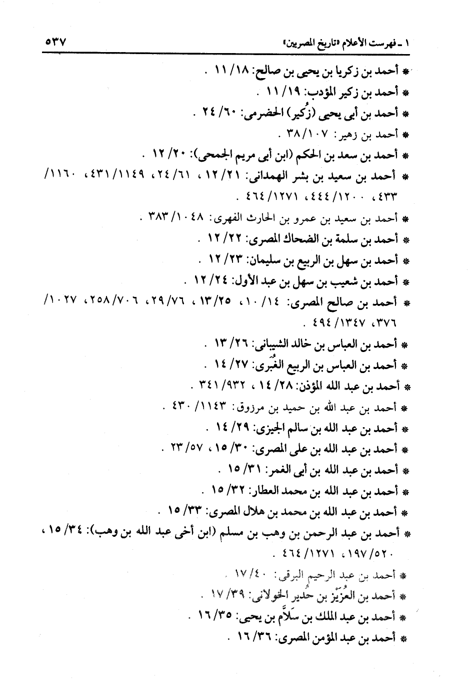 * أحمد بن صالح المصرى: 14/10، 25/13، 76/29، 706/258، 1027/376، 1347/494.