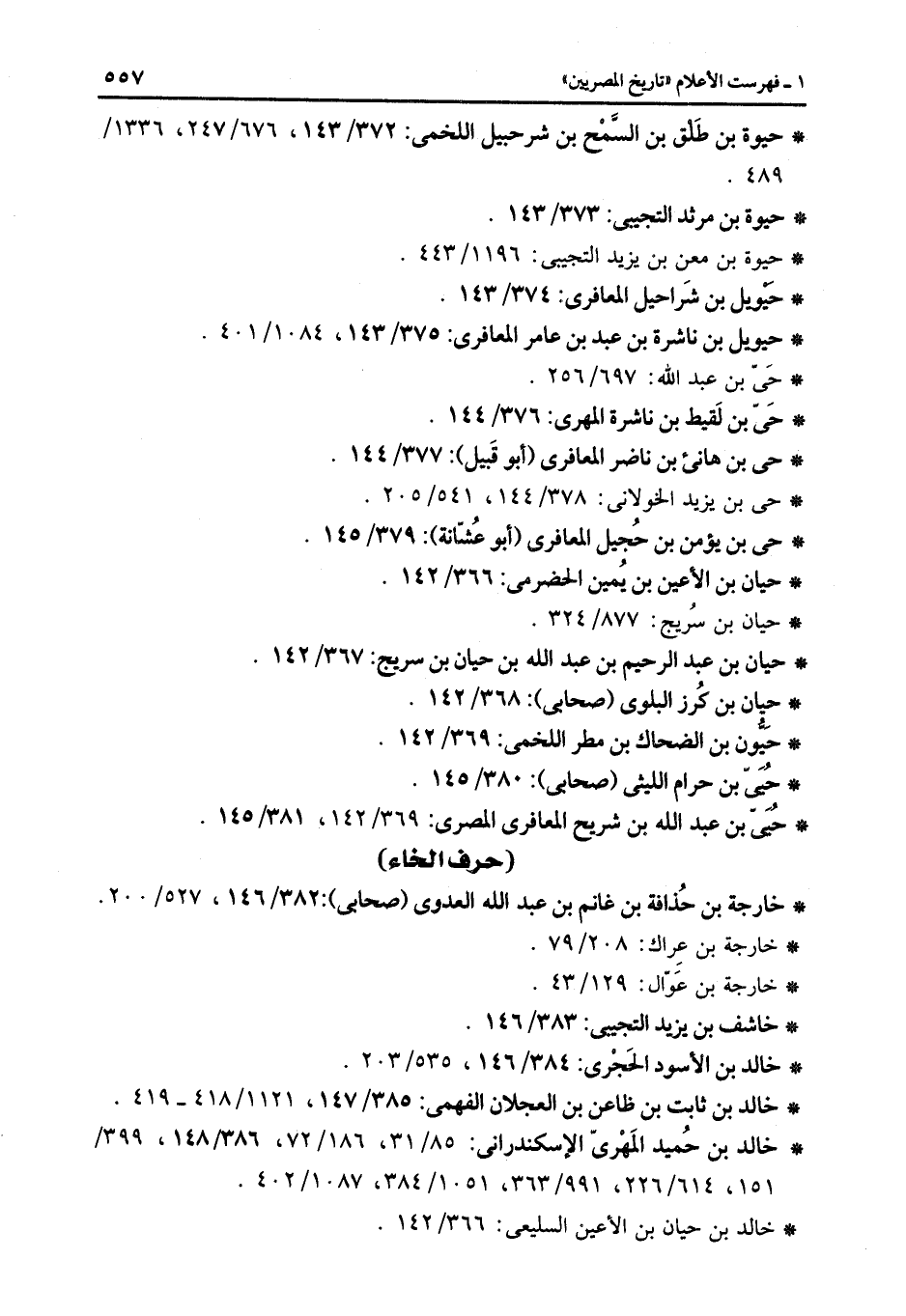 (حرف الخاء) * خارجة بن حذافة بن غانم بن عبد الله العدوى (صحابى) : 382/146، 527/200.