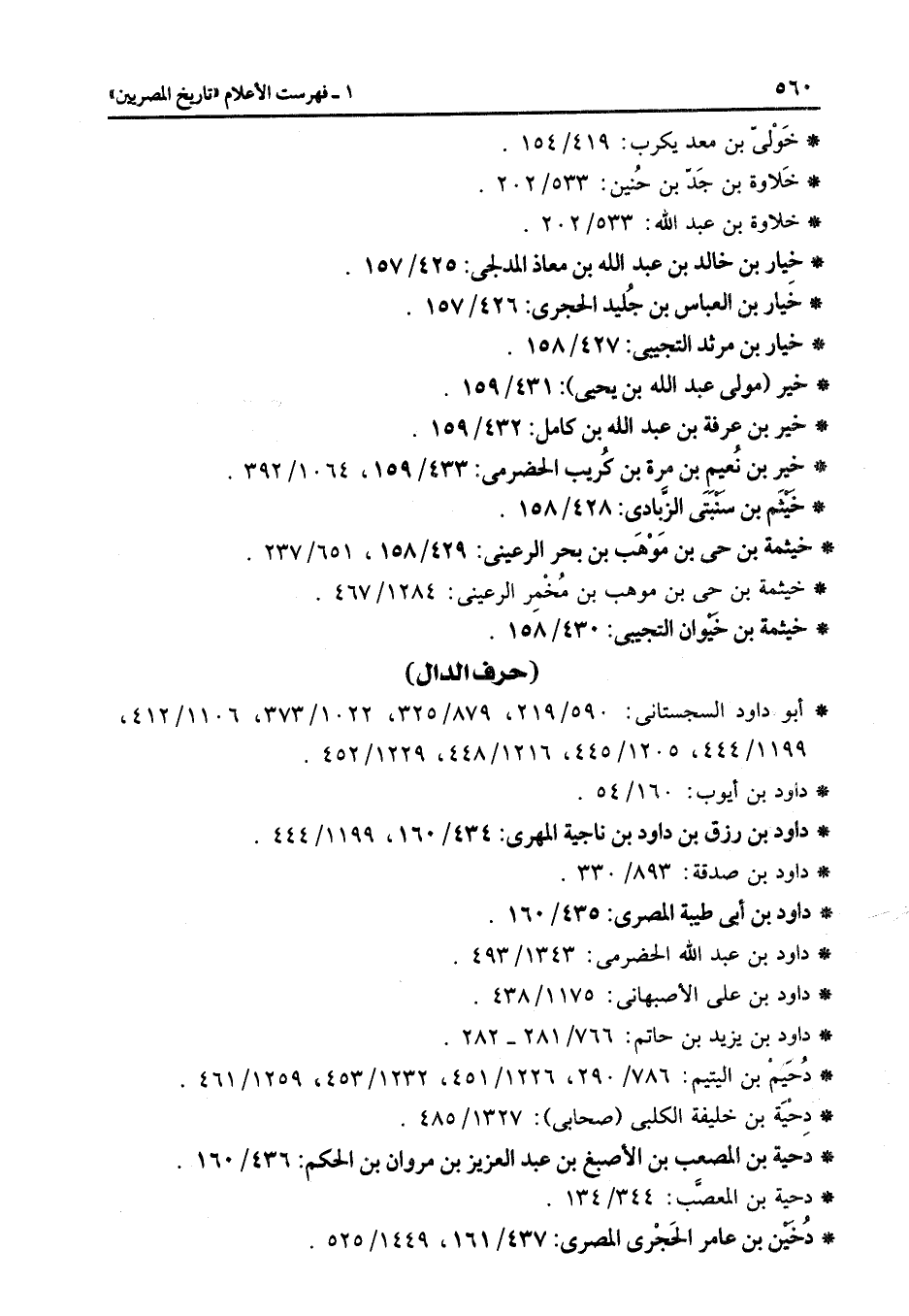 (حرف الدال) * أبو داود السجستانى: 590/219، 879/325، 1022/373، 1106/412، 1199/444، 1205/445، 1216/448، 1229/452.