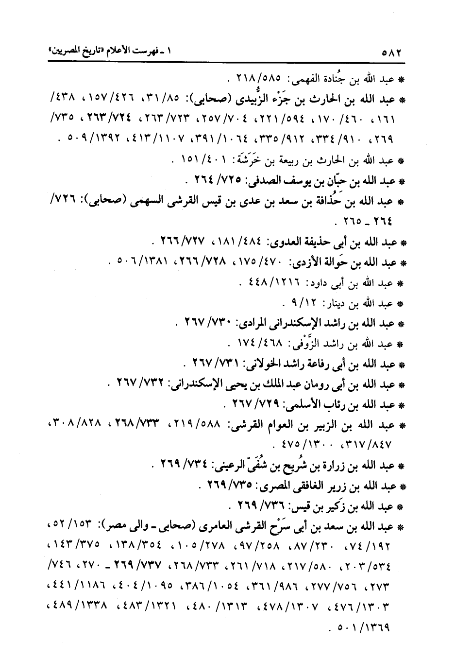 * عبد الله بن الحارث بن جزء الزّبيدى (صحابى) : 85/31، 426/157، 438/161، 460/170، 594/221، 704/257، 723/263، 724/263، 735/269، 910/334، 912/335، 1064/391، 1107/413، 1392/509.